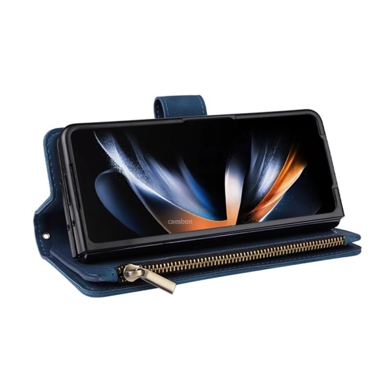 Για Samsung Galaxy Z Fold5 πολυλειτουργικό παγωμένο φερμουάρ πορτοφόλι δερμάτινη θήκη τηλεφώνου (μπλε)