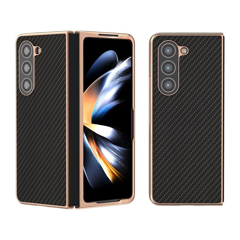 Για το Samsung Galaxy Z Fold5 Nano Electroplating Carbon Fiber Texture υπόθεση τηλεφώνου (μαύρο)