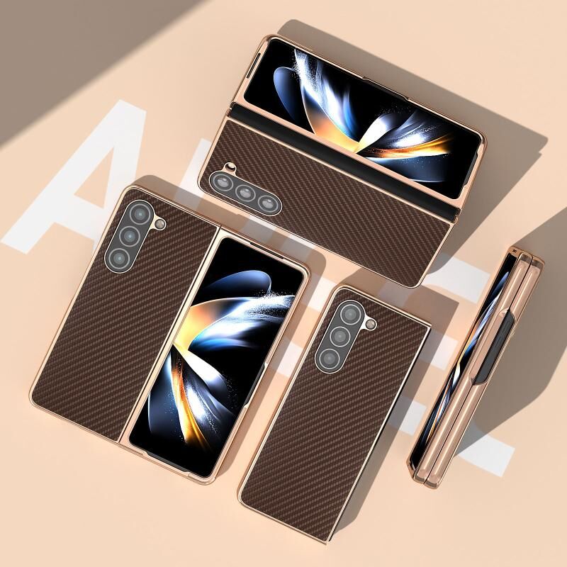 Για Samsung Galaxy Z Fold5 Nano Electroplating Carbon Fiber Texture υπόθεση τηλεφώνου (σκούρο καφέ)