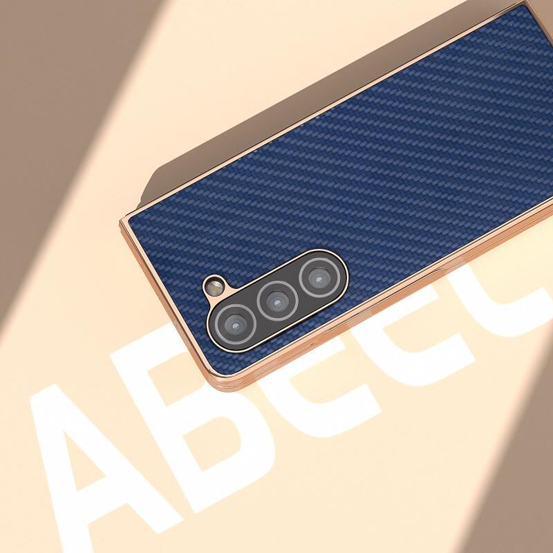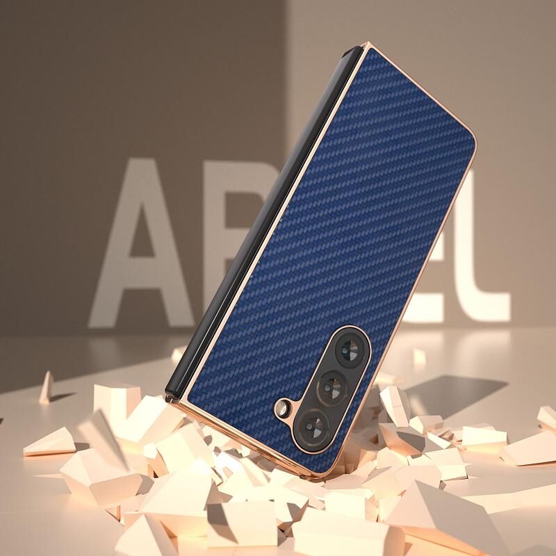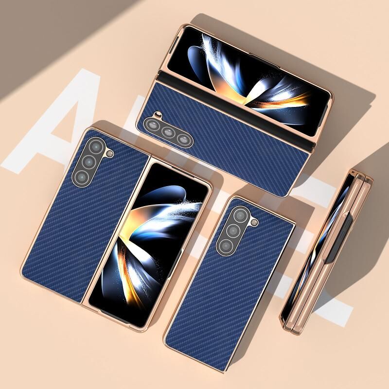 Για Samsung Galaxy Z Fold5 Nano Electroplating Carbon Fiber Texture υπόθεση τηλεφώνου (Navy Blue)