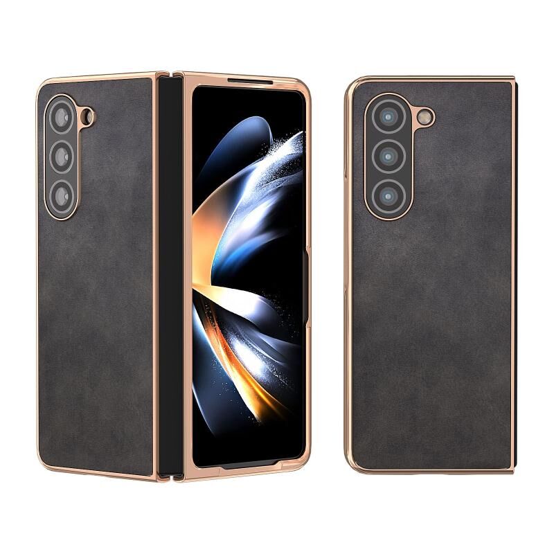 Για Samsung Galaxy Z Fold5 Nano ηλεκτρολυτική διπλού χρώματος δέρμα αγελάδας υφή Προστατευτική θήκη τηλεφώνου (μαύρο)