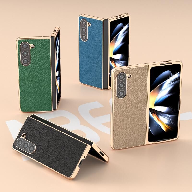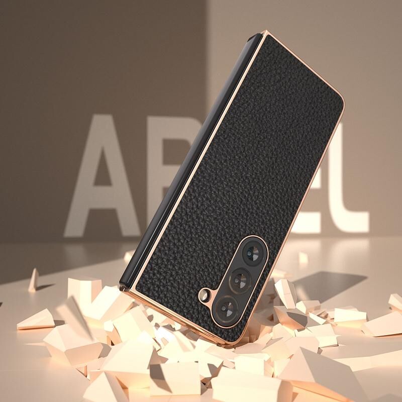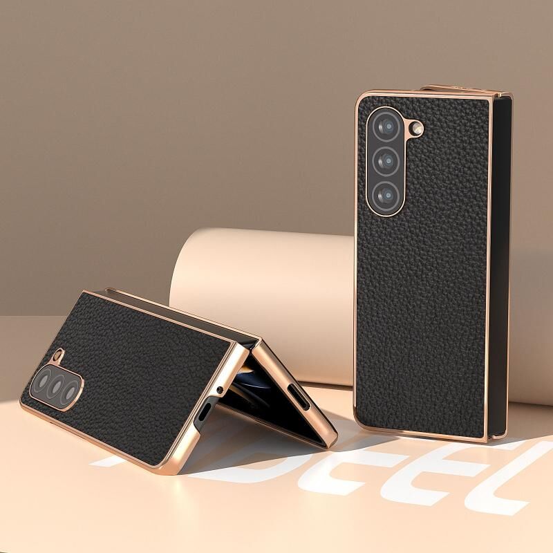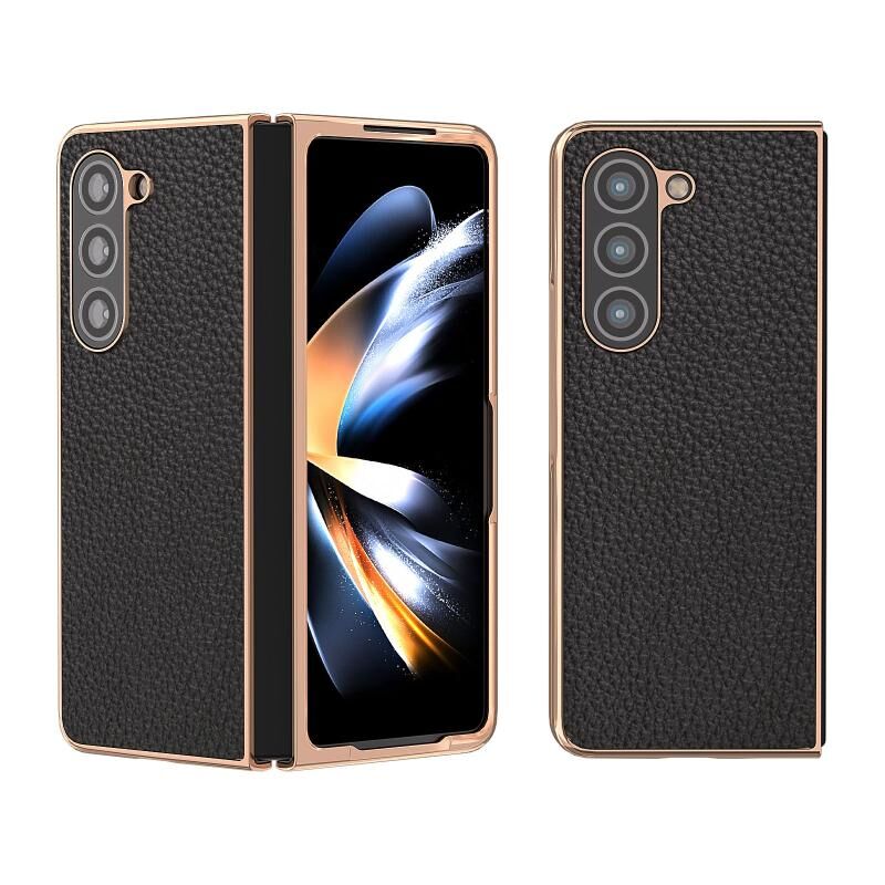 Θήκη τηλεφώνου Samsung Galaxy Z Fold5 Nano Electroplating Genuine Leather Litchi Texture (Μαύρο)