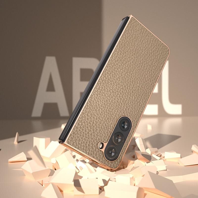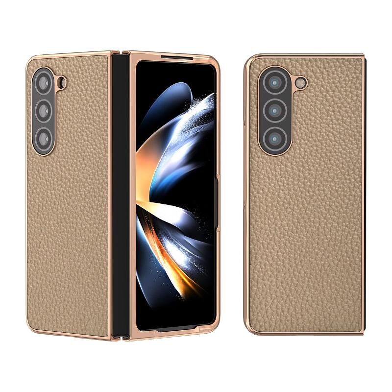 Θήκη τηλεφώνου Samsung Galaxy Z Fold5 Nano Electroplating Genuine Leather Litchi Texture (Μαύρο)