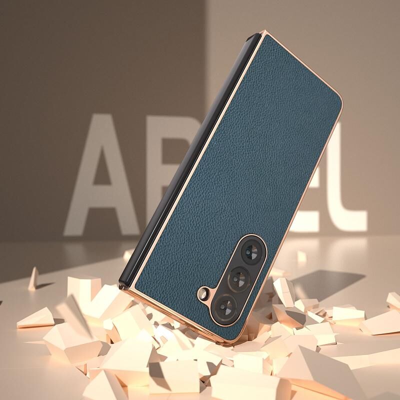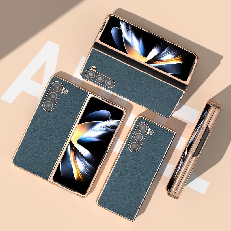 Θήκη τηλεφώνου Samsung Galaxy Z Fold5 Nano Electroplating Genuine Leather + PC Litchi Texture (Μαύρο)