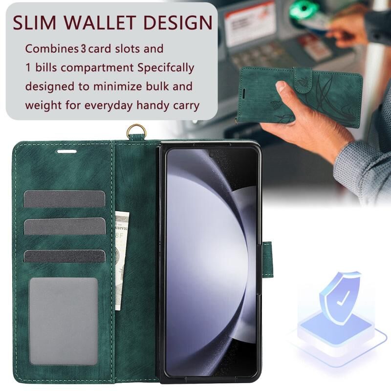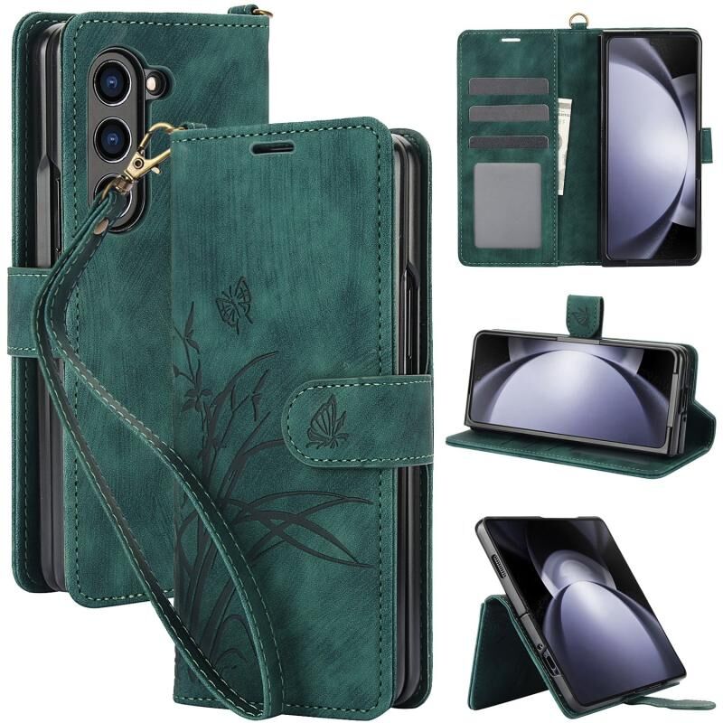 Θήκη τηλεφώνου Samsung Galaxy Z Fold5 Orchid Butterfly Embossed Leather (Πράσινη)