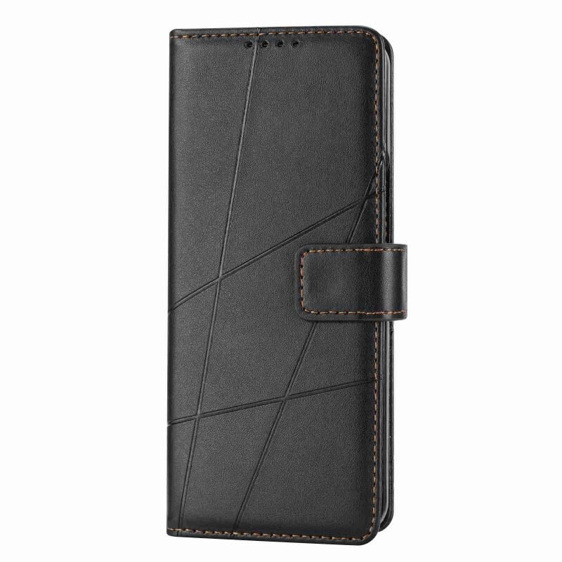 Θήκη τηλεφώνου Samsung Galaxy Z Fold5 από γνήσιο δέρμα PU με ανάγλυφη υφή και λεπτομέρειες γραμμής (Μπλε)