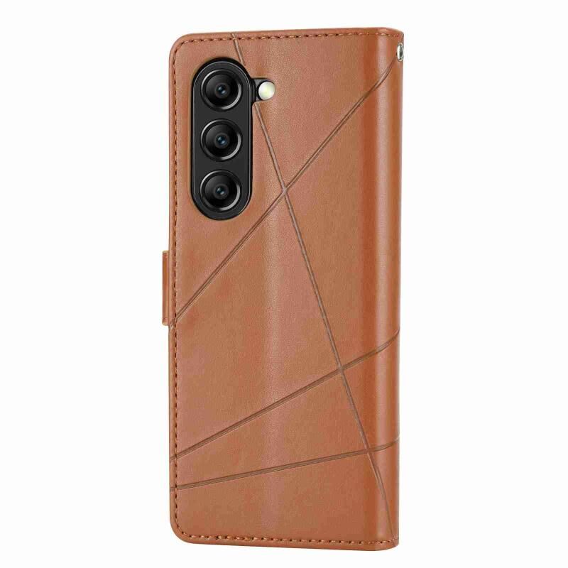 Θήκη τηλεφώνου Samsung Galaxy Z Fold5 από γνήσιο δέρμα PU με ανάγλυφη υφή και λεπτομέρειες γραμμής (Μπλε)
