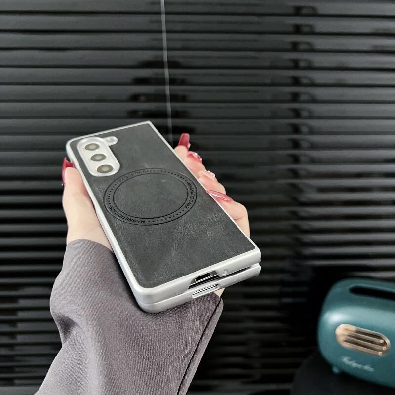 Θήκη κινητού τηλεφώνου με υφή δέρματος, μαγνητική MagSafe, ιριδίζουσα βαφή, αντικραδασμική για Samsung Galaxy Z Fold5 (Μωβ)