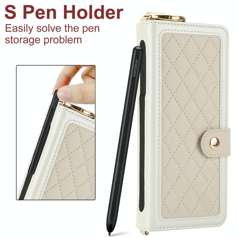 Για Samsung Galaxy Z Fold5 Splicing Rhombic Υφή υπόθεση τηλεφώνου με μακρύ & σύντομο κορδόνι, δεν περιλαμβάνεται στυλό (μπεζ)