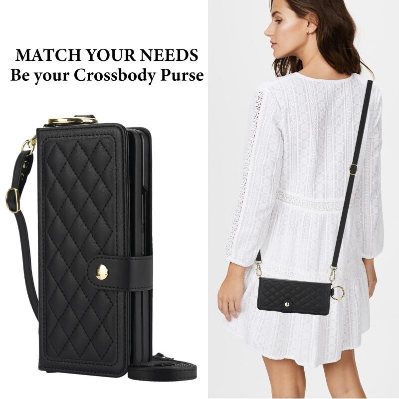 Για το Samsung Galaxy Z Fold5 Splicing Rhombic Υφή υπόθεση τηλεφώνου με μακρύ & κοντό κορδόνι, δεν περιλαμβάνεται στυλό (μαύρο)