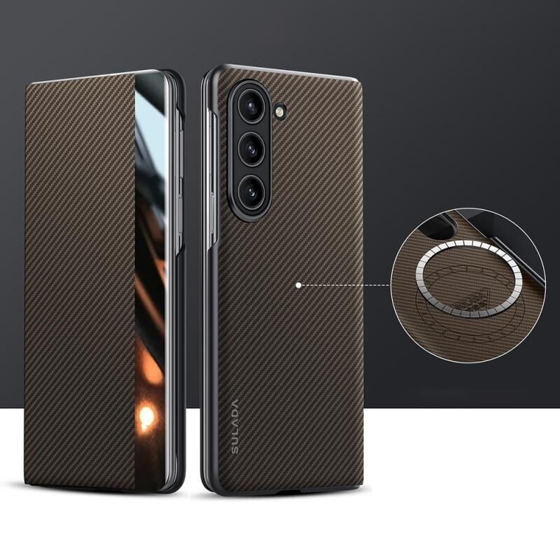 Θήκη τηλεφώνου Samsung Galaxy Z Fold5 SULADA Kevlar 600D με υφή, δερμάτινη με έξυπνο παράθυρο (Μαύρο) (SULADA)