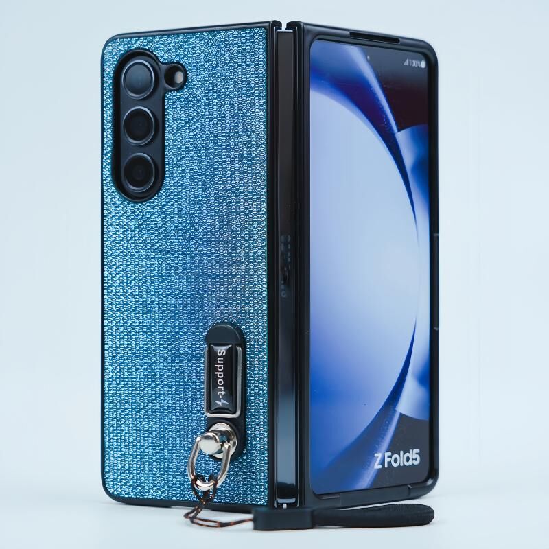 Για το Samsung Galaxy Z Fold5 Τρία μέρη Flash Diamond Diamond Fold θήκη τηλεφώνου PC με κορδόνι (πράσινο)