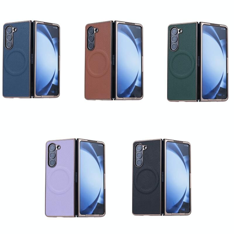 Θήκη για Samsung Galaxy Z Fold5 σε τρία μέρη με υφή Litchi και MagSafe (Μαύρο)