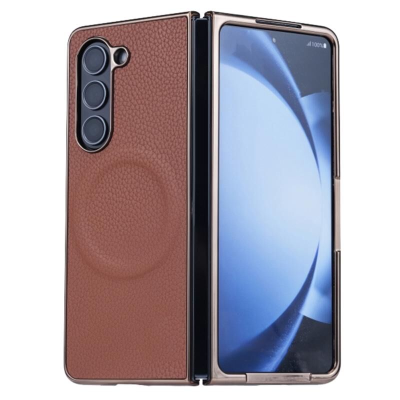 Θήκη για Samsung Galaxy Z Fold5 σε τρία μέρη με υφή Litchi και MagSafe (Μαύρο)