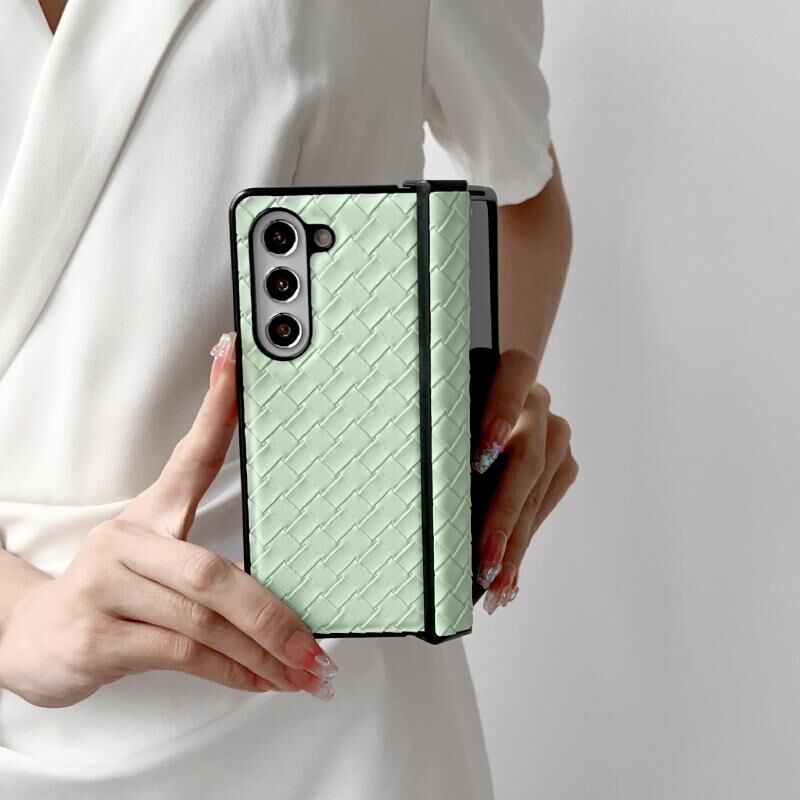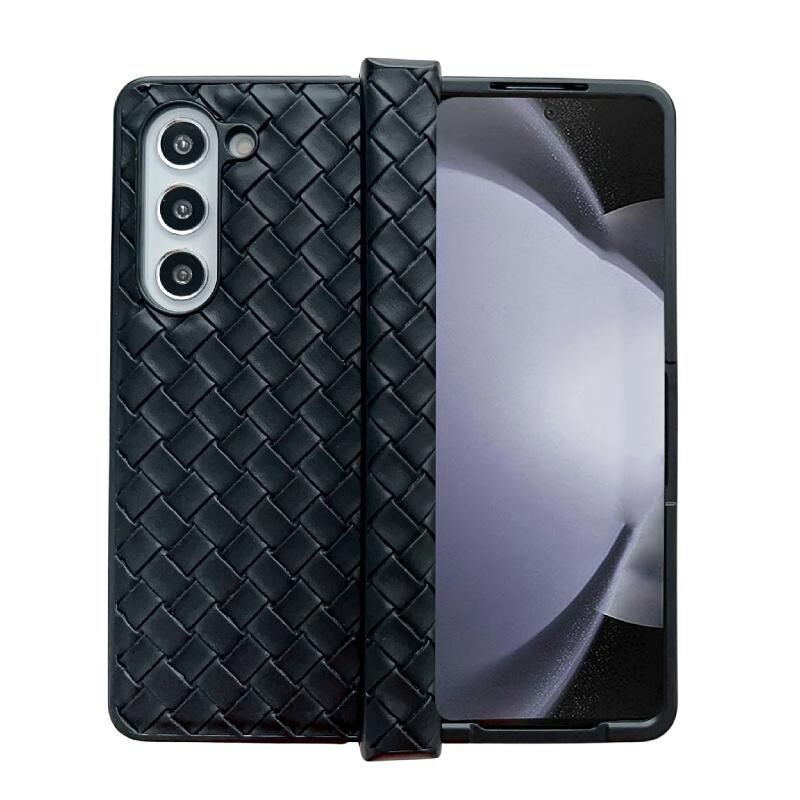 Σετ τριών τεμαχίων για Samsung Galaxy Z Fold5, θήκη τηλεφώνου από υφαντό PU με πτυσσόμενη υφή (Μαύρο)