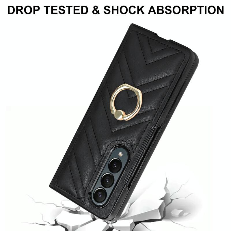 Για Samsung Galaxy Z Fold5 V-shaped Folding Phone Case με περιστρεφόμενο δακτύλιο (Μαύρο)