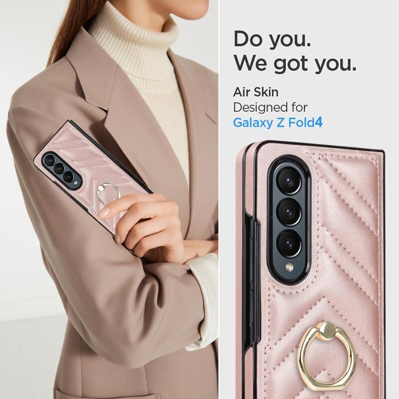 For Samsung Galaxy Z Fold5 V-shaped Folding Phone Case with Rotating Ring(Rose Gold)