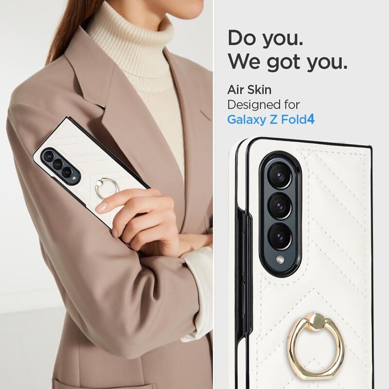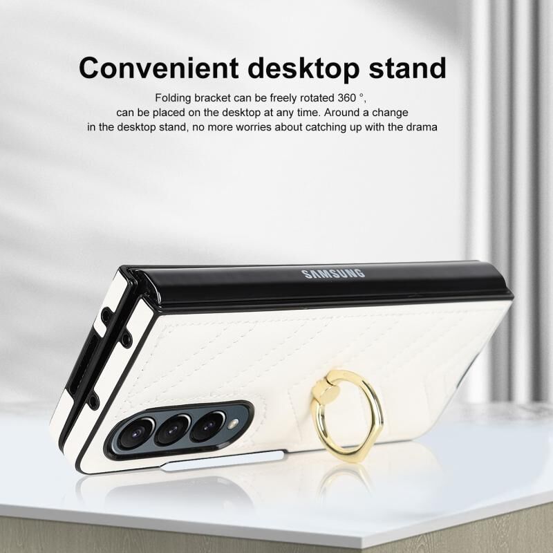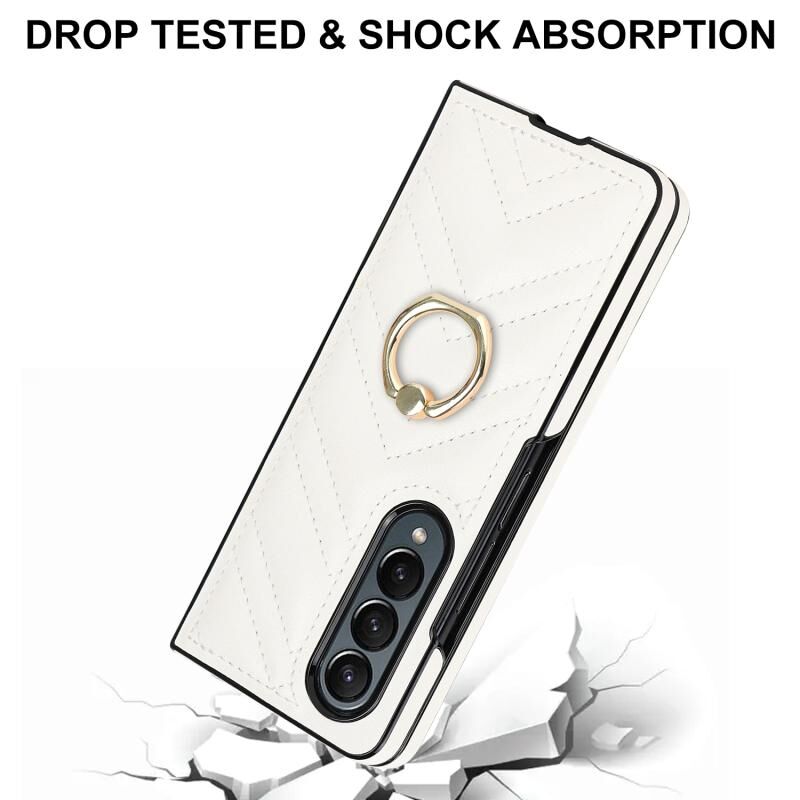 For Samsung Galaxy Z Fold5 V-shaped Folding Phone Case with Rotating Ring(White)