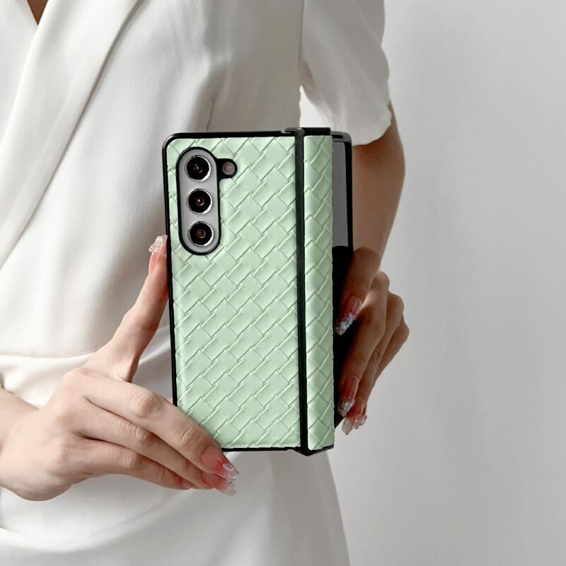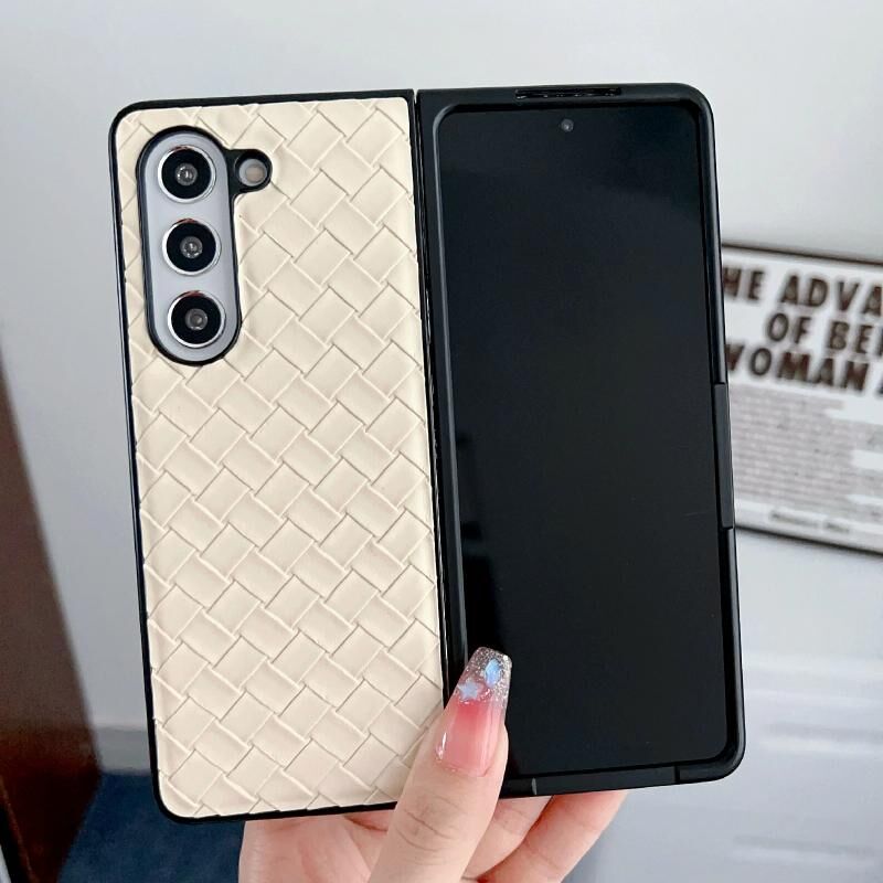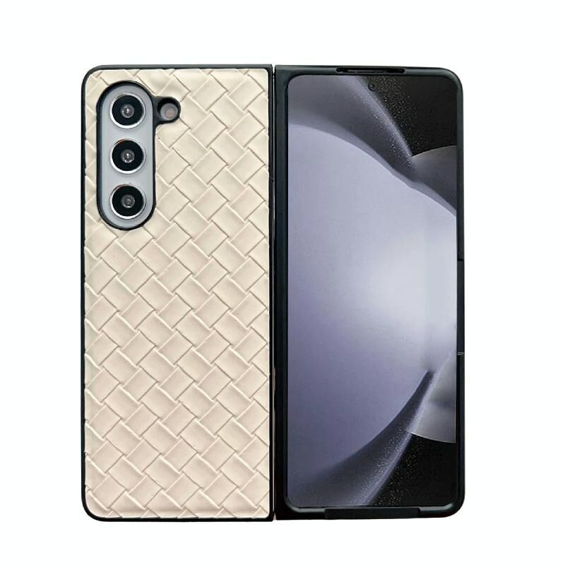 Θήκη τηλεφώνου Samsung Galaxy Z Fold5 με υφαντή υφή, πτυσσόμενη από PU (Χρυσό)