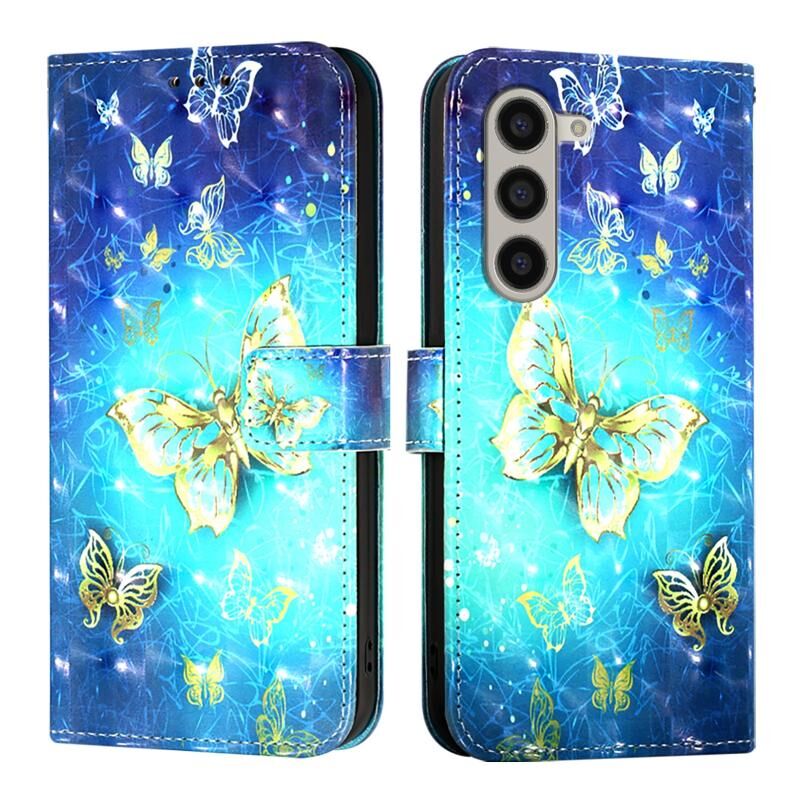 Θήκη τηλεφώνου δερμάτινη, οριζόντια αναδιπλούμενη, με τρισδιάστατη ζωγραφική για Samsung Galaxy Z Fold6 (Χρυσή Πεταλούδα)