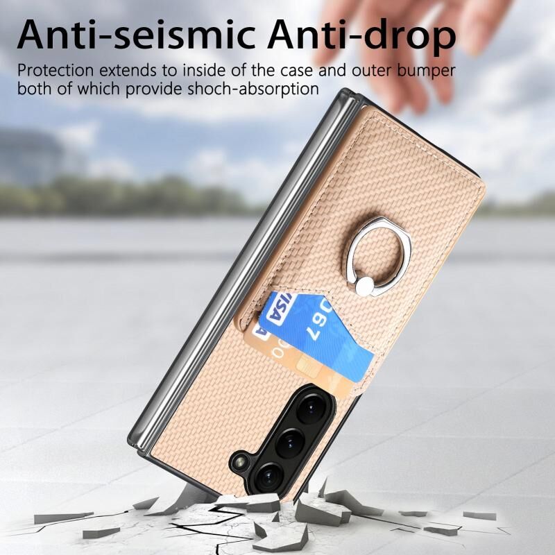 Για Samsung Galaxy Z Fold6 5G κάρτας ινών άνθρακα πορτοφόλι δαχτυλίδι κάτοχος θήκη τηλεφώνου (χακί)