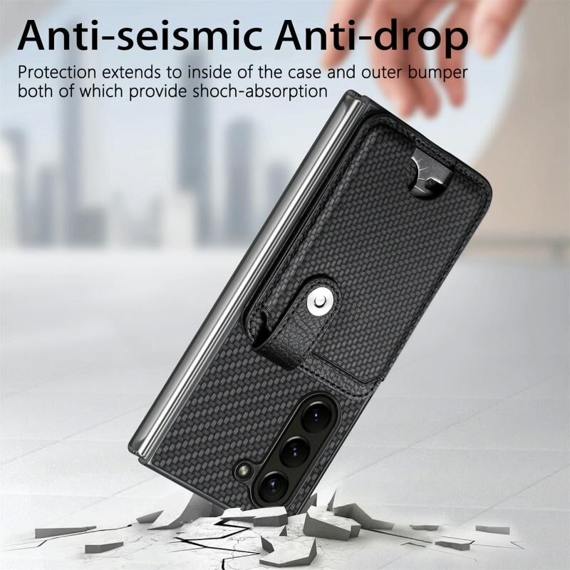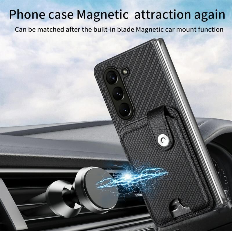 Για Samsung Galaxy Z Fold6 5G κάρτα πορτοφόλι Kickstand πίσω τηλέφωνο υπόθεση με εργαλείο μαχαίρι (Μαύρο)