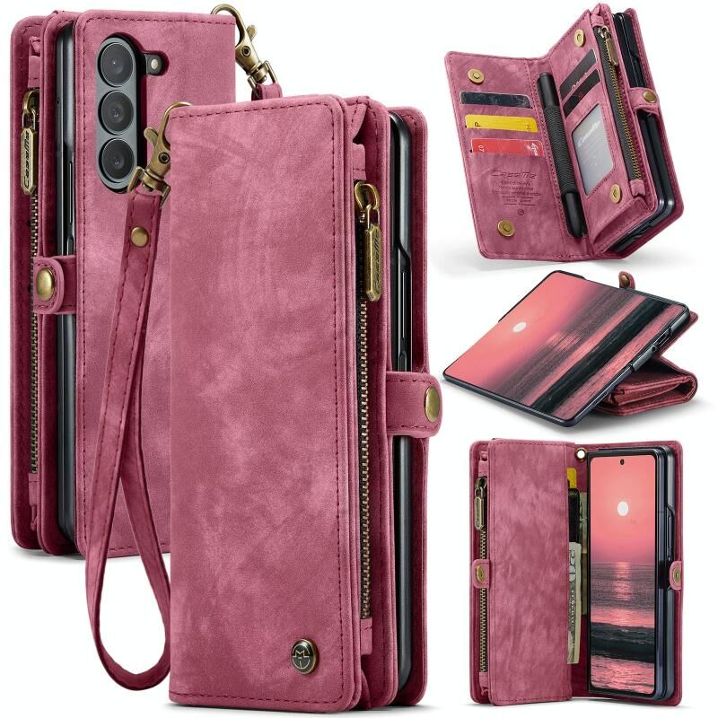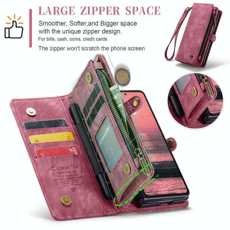 Για Samsung Galaxy Z Fold6 5G CaseMe 008 Πολυλειτουργική θήκη τηλεφώνου με φερμουάρ και δερμάτινο πορτοφόλι με κορδόνι (κόκκινο) (CaseMe)