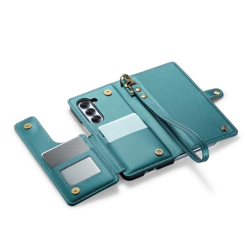 Για Samsung Galaxy Z Fold6 5G CaseMe C22 PC + TPU Business Style RFID Anti-theft Lanyard Δερμάτινη θήκη τηλεφώνου με υποδοχή για στυλό (μπλε πράσινο) (CaseMe)