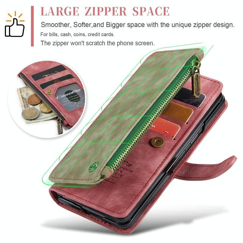Για Samsung Galaxy Z Fold6 5G CaseMe C30 Πολυλειτουργική κάρτα Slots φερμουάρ τηλέφωνο δερμάτινη θήκη τηλεφώνου (κόκκινο) (CaseMe)