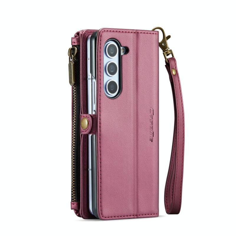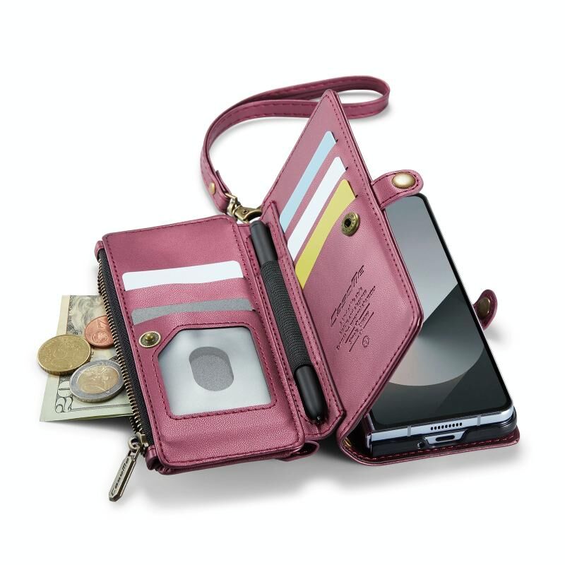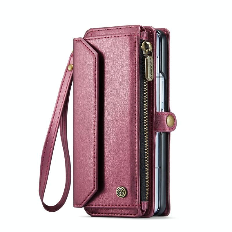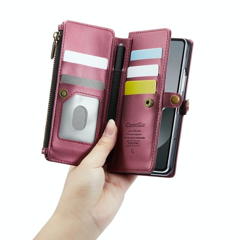Για Samsung Galaxy Z Fold6 5G CaseMe C36 υποδοχές για κάρτες φερμουάρ πορτοφόλι RFID αντικλεπτική δερμάτινη θήκη τηλεφώνου (κόκκινο κρασί) (CaseMe)
