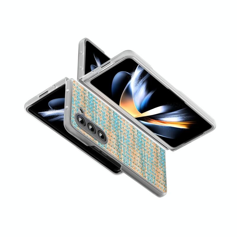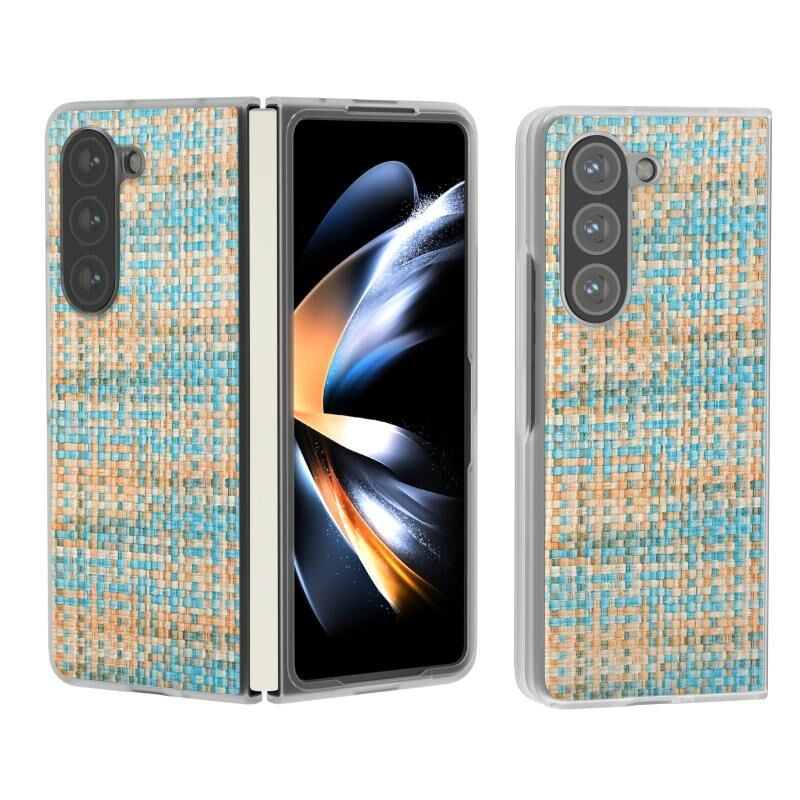 Για Samsung Galaxy Z Fold6 5G πολύχρωμο Rhombic υφή παγωμένο ημιδιαφανές πλαίσιο PU υπόθεση τηλεφώνου (μπλε)