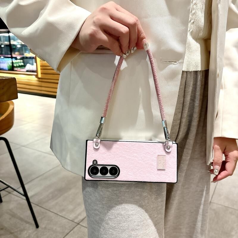 Για Samsung Galaxy Z Fold6 5G Άνετη σύντομη βελούδινη θήκη τηλεφώνου πλήρους κάλυψης με λουράκι καρπού (ροζ)