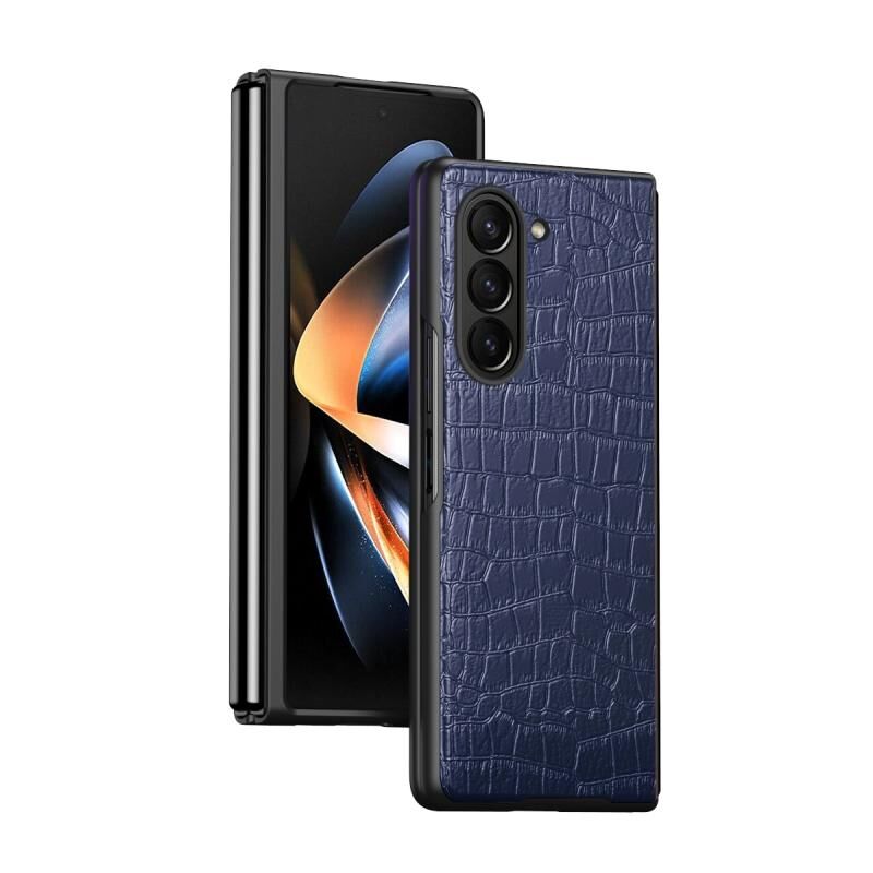 Θήκη κινητού τηλεφώνου για Samsung Galaxy Z Fold6 5G με υφή κροκόδειλου, πλήρως προστατευτική και αντικραδασμική (Μαύρο)