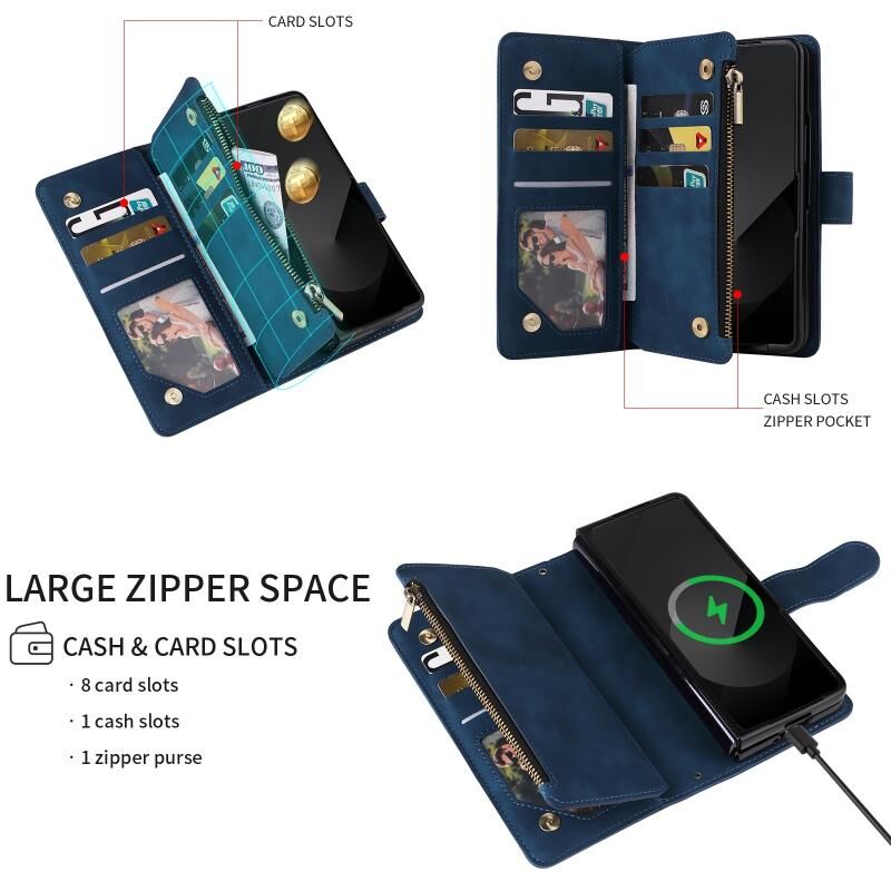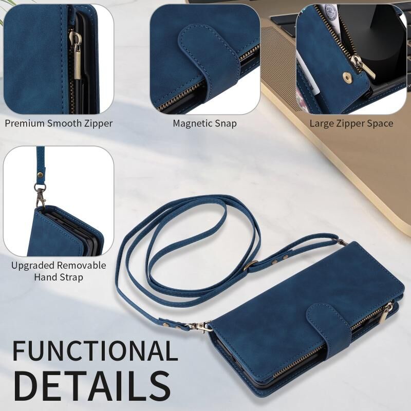 Για Samsung Galaxy Z Fold6 5G Crossbody Multi-card Slot πορτοφόλι φερμουάρ δερμάτινη θήκη τηλεφώνου (σκούρο μπλε)