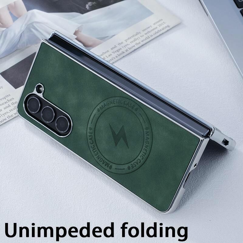 Θήκη τηλεφώνου για Samsung Galaxy Z Fold6 5G, ηλεκτρολυτική πολυανθρακική, με επένδυση από δέρμα αρνιού, αόρατη μαγνητική MagSafe, πτυσσόμενη (Μαύρο)