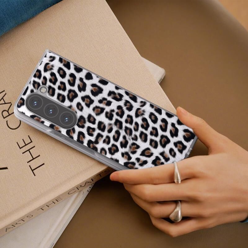 For Samsung Galaxy Z Fold6 5G Frosted Transparent Edge Leopard Print Phone Case(Silver)