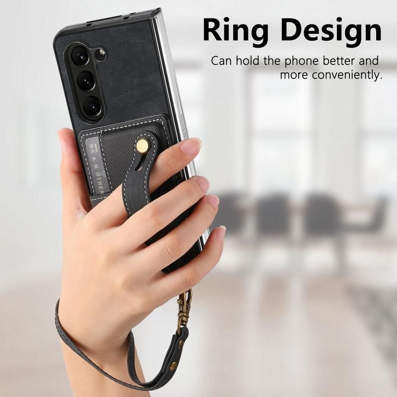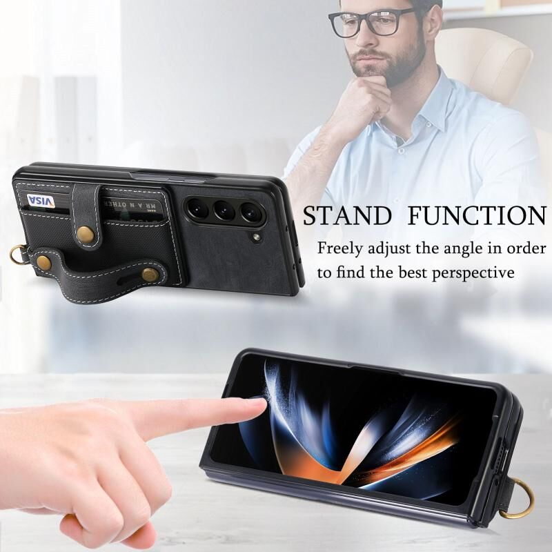 Για Samsung Galaxy Z Fold6 5G Retro Σταυρός Wristband πορτοφόλι δέρμα πίσω υπόθεση τηλεφώνου (μαύρο)