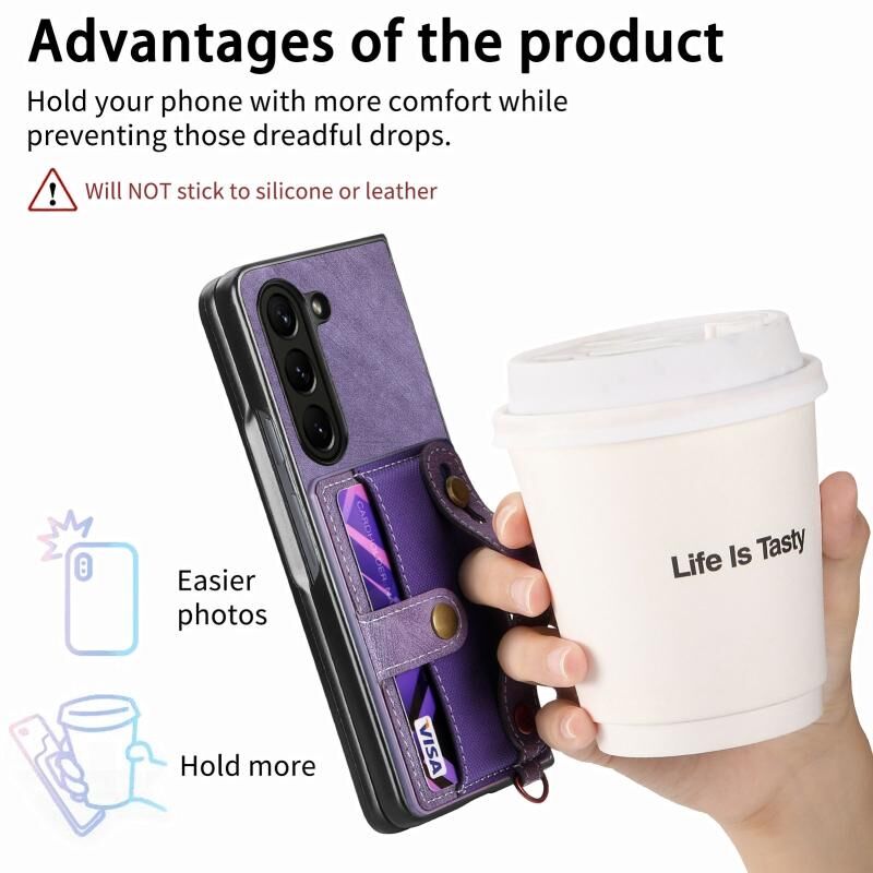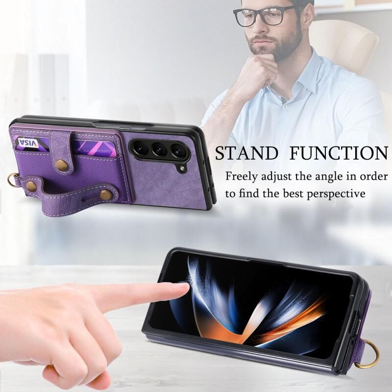 Για Samsung Galaxy Z Fold6 5G Retro Σταυρός Wristband πορτοφόλι δέρμα πίσω υπόθεση τηλεφώνου (μωβ)
