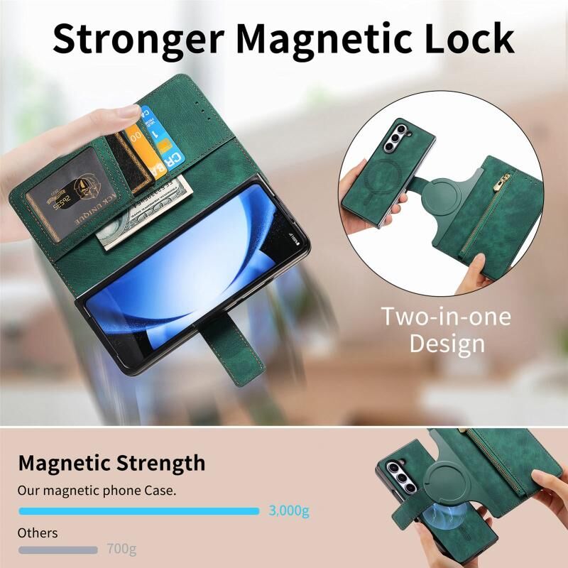 Θήκη τηλεφώνου Samsung Galaxy Z Fold6 5G Retro MagSafe Μαγνητικό Πορτοφόλι με Φερμουάρ από Δέρμα (Καφέ)