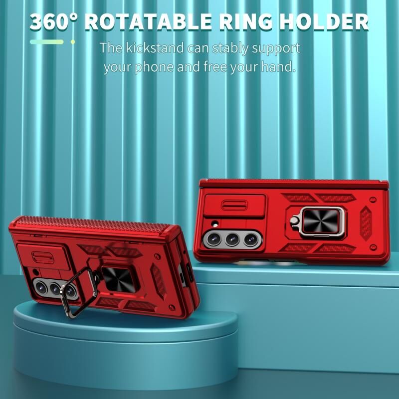 Για Samsung Galaxy Z Fold6 5G συρόμενο παράθυρο με μεντεσέ τηλέφωνο υπόθεση με δαχτυλίδι Stand (Κόκκινο)