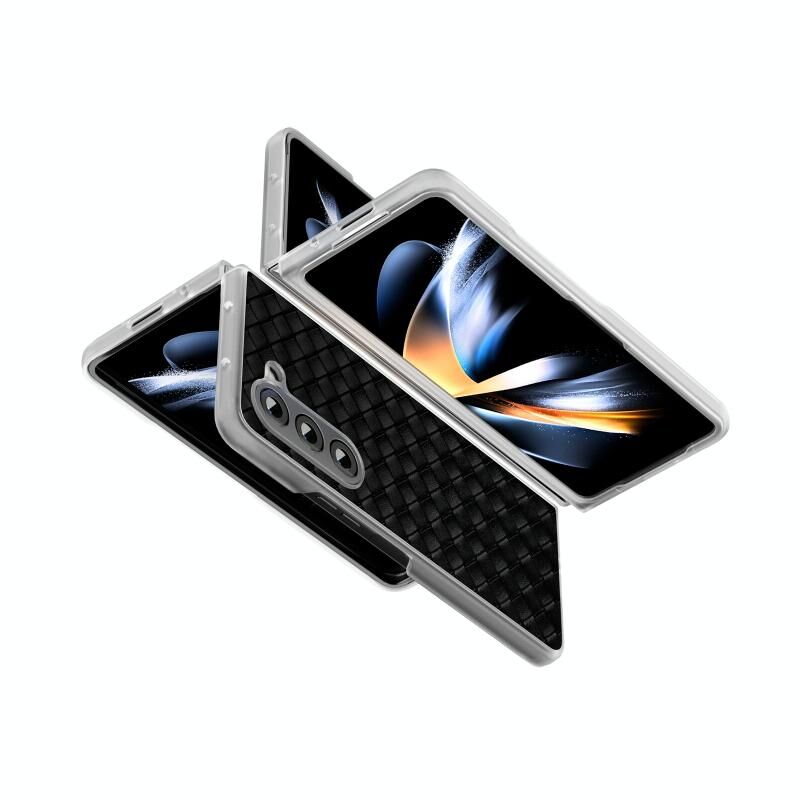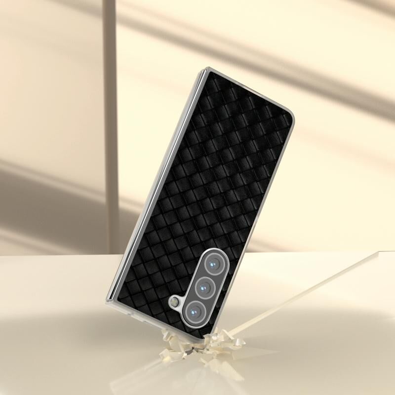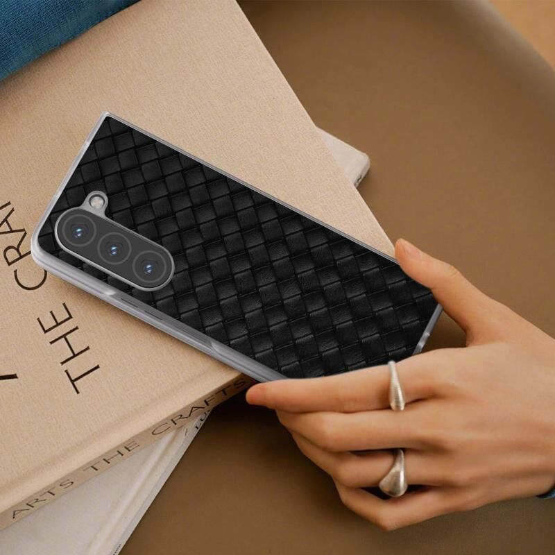 Για το Samsung Galaxy Z Fold6 5G Υφαντή υφή παγωμένο ημιδιαφανές πλαίσιο PU υπόθεση τηλεφώνου (μαύρο)