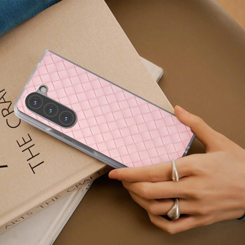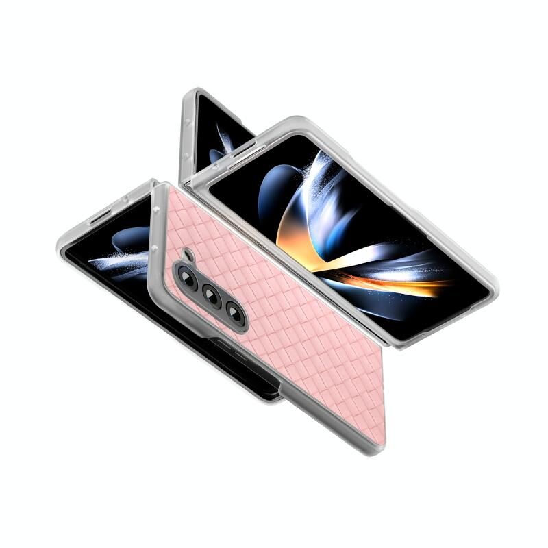 Για Samsung Galaxy Z Fold6 5G Υφαντή υφή παγωμένο ημιδιαφανές πλαίσιο PU υπόθεση τηλεφώνου (ροζ)