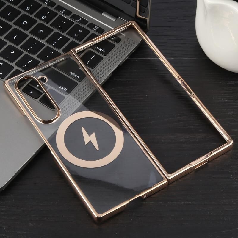 For Samsung Galaxy Z Fold6 6D Glossy Electroplated PC MagSafe Phone Case(Desert Gold)