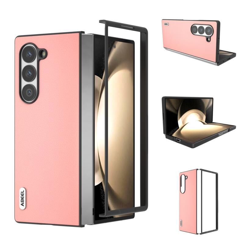 Θήκη τηλεφώνου από γνήσιο δέρμα Samsung Galaxy Z Fold6 ABEEL, Μαύρο Κυματιστό Χείλος (Ροζ)