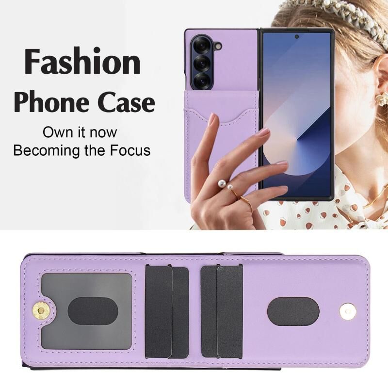 Για Samsung Galaxy Z Fold6 AwQuer RFID Κάθετη Flip κάρτα τσάντα κάτοχος δερμάτινη θήκη τηλεφώνου (Light Purple) (Awquer)
