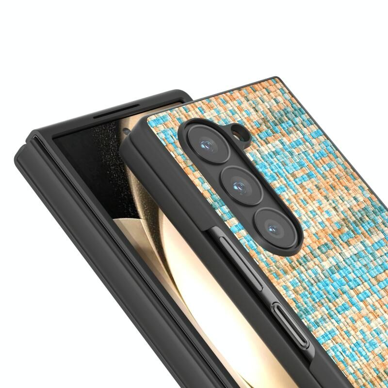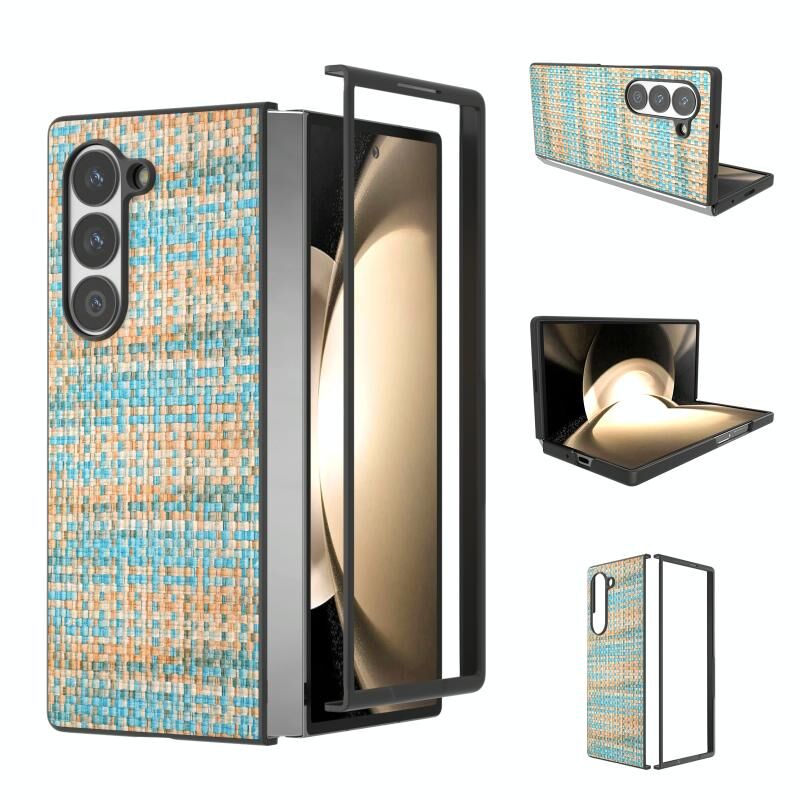 Για Samsung Galaxy Z Fold6 μαύρο πλαίσιο χρώμα πλέγμα υφή PU τηλέφωνο υπόθεση (μπλε)
