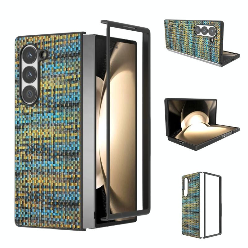 Για Samsung Galaxy Z Fold6 μαύρο πλαίσιο χρώμα πλέγμα υφή PU τηλέφωνο υπόθεση (χρυσό)