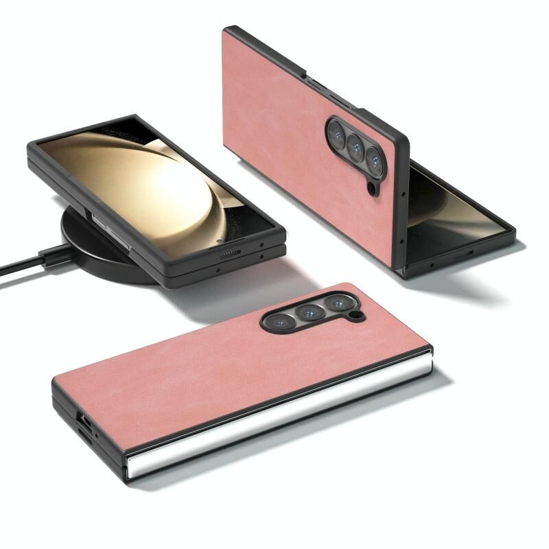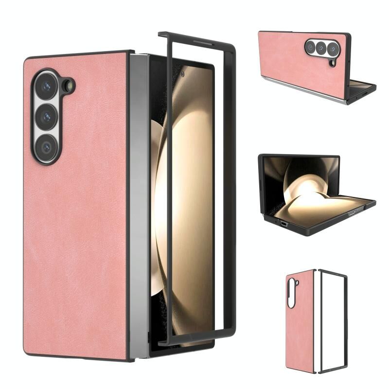 Για Samsung Galaxy Z Fold6 μαύρο πλαίσιο PU δέρμα PU πλήρη κάλυψη υπόθεση τηλεφώνου (ροζ)