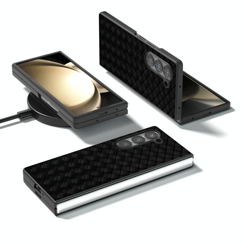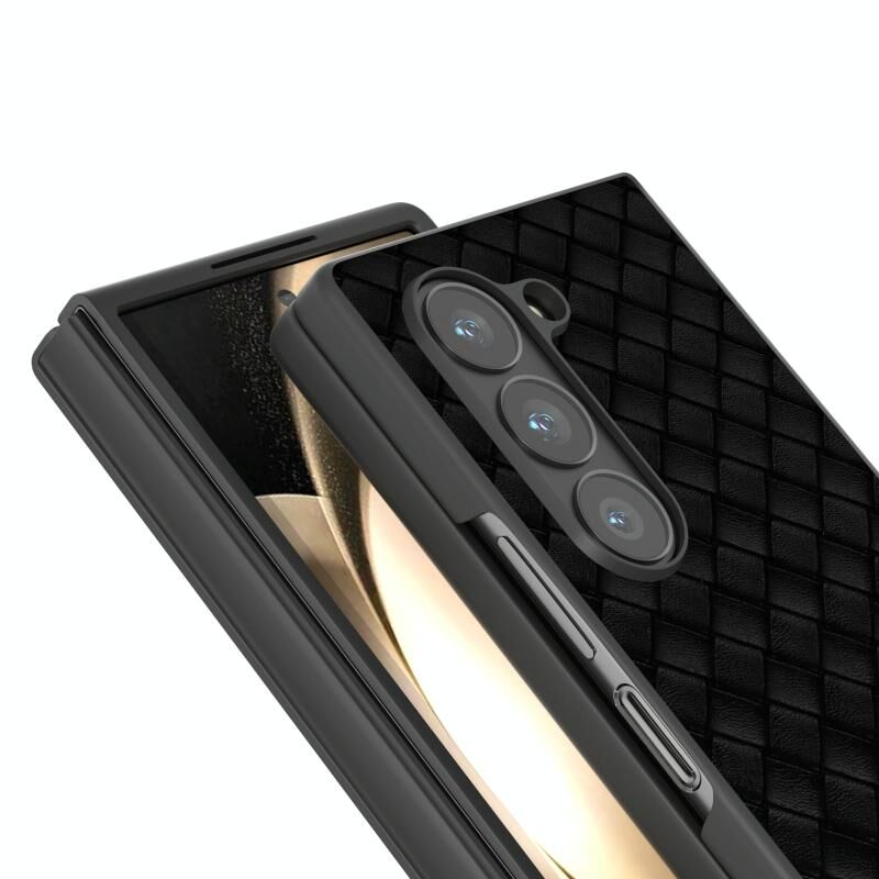 Για Samsung Galaxy Z Fold6 μαύρο πλαίσιο υφαντά υφή PU υπόθεση τηλεφώνου (μαύρο)