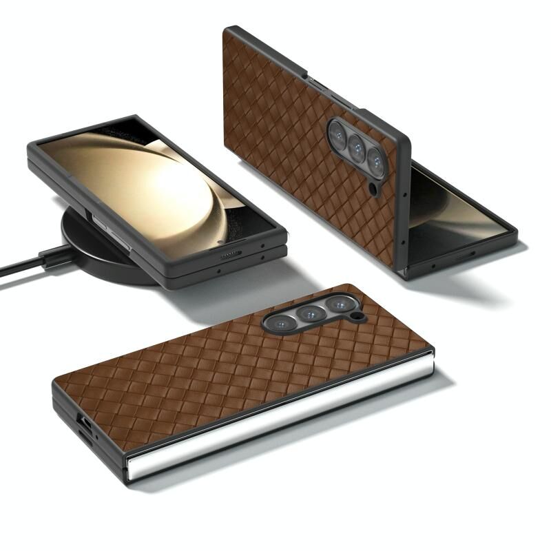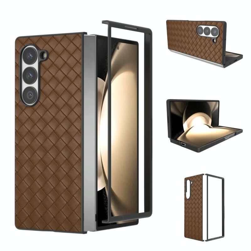 Για Samsung Galaxy Z Fold6 μαύρο πλαίσιο υφαντά υφή PU υπόθεση τηλεφώνου (καφέ)